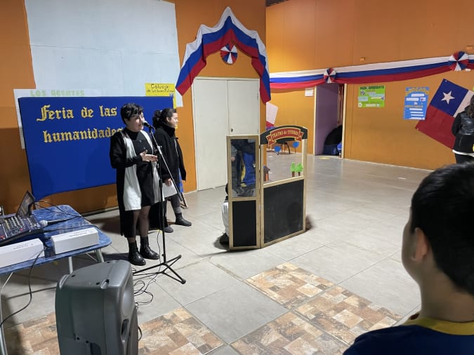 Posteriormente, los estudiantes de 7mo año básico junto a la directora Lilian Vallejos, declamaron diferentes poemas para sus compañeros de 5to y 6to básico. Para finalizar la jornada de la mañana, los estudiantes del electivo “Interpretación y Creación Teatral” dirigidos por el profesor Carlos Crisóstomo presentaron teatros musicales y narraciones orales a los cursos desde 1ero a 4to básico.